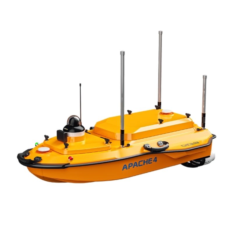 El USV APACHE 4 está optimizado para estudios hidrológicos, compatible con una gama de sistemas ADCP y multihaz compactos. Su barrido poco profundo, su alta precisión y su flotación estable lo hacen ideal para medir la velocidad del flujo de agua y la descarga. Compacto y fácil de manejar, garantiza una gestión del sitio sencilla, lanzamientos seguros y un cómodo transporte del vehículo. Con tecnología GNSS+IMU integrada, proporciona un posicionamiento y una orientación fiables, lo que mejora la funcionalidad de los ADCP y del piloto automático para un análisis preciso del flujo de agua.