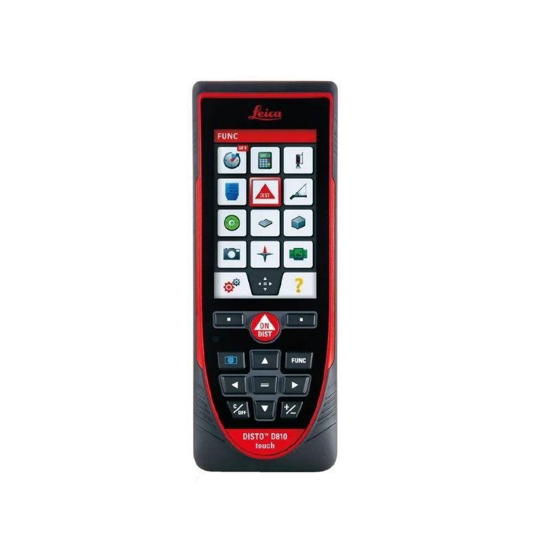 Pantalla táctil grande para un funcionamiento rápido e intuitivo. Por medio de acciones comunes como arrastrar y acercar con dos dedos, es posible acceder rápida y fácilmente al resto de las funciones. También es posible efectuar mediciones por medio de la pantalla táctil, lo cual evita que se mueva accidentalmente el Leica DISTO D810 durante la medición.