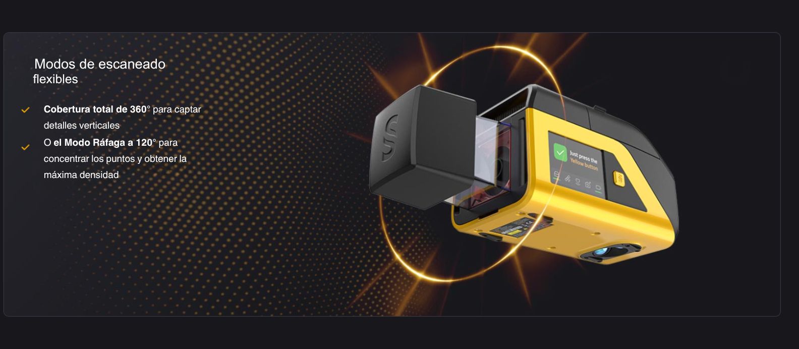 | Campo de visión del escáner | 360° (120° en modo ráfaga) |
