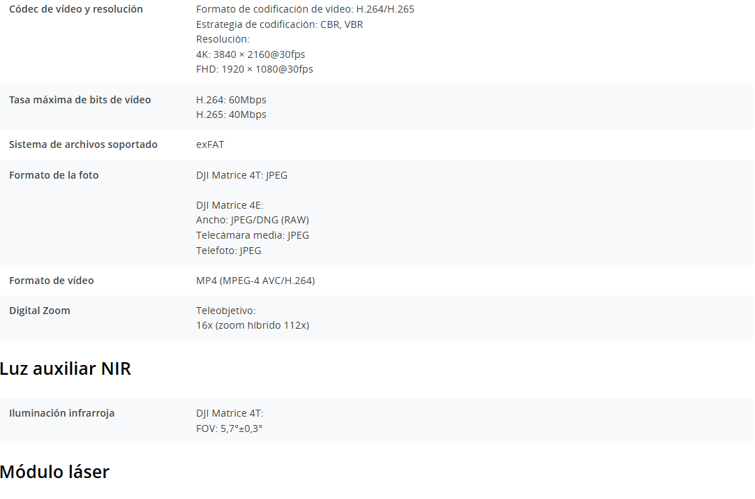 Los nuevos DJI Matrice 4D y 4TD, resistentes al agua y al polvo, están diseñados específicamente para DJI Dock 3, ofrecen una mayor autonomía de vuelo y se pueden conectar al DJI RC Plus 2 Enterprise para uso independiente. Ambos drones están equipados con una cámara gran angular, un teleobjetivo medio, un teleobjetivo y un telémetro láser. El Matrice 4D es muy eficaz para la cartografía profesional de alta precisión y la inspección detallada de superficies. El Matrice 4TD está equipado con una cámara térmica infrarroja y una nueva luz auxiliar NIR, lo que lo hace ideal para una amplia gama de aplicaciones, como inspecciones de infraestructuras, respuesta a emergencias y seguridad pública.